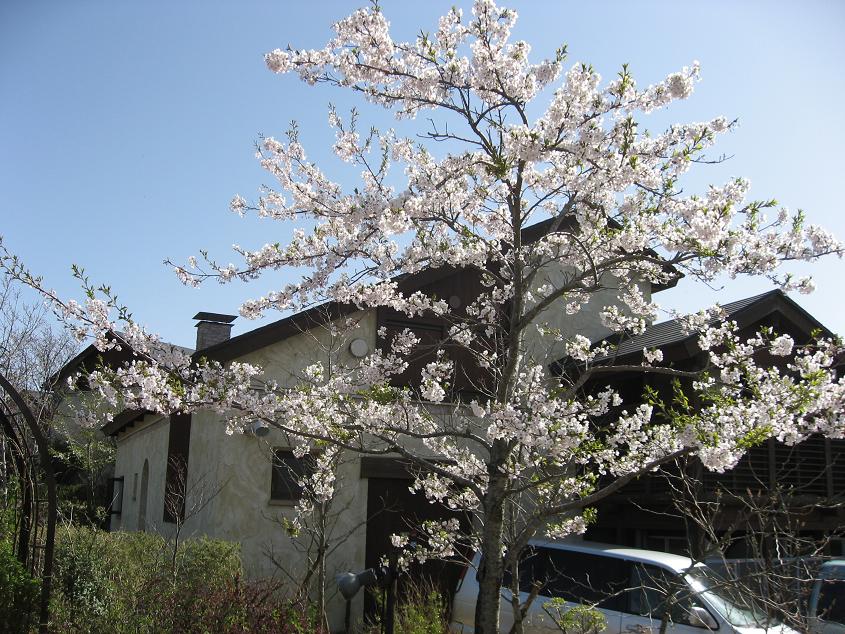 植物園を散策してガーデンテラスの展望台へ少しかすんでいましたが神戸の町並みから遠く大阪梅田方面まで見えました。 テラスの入り口にさくらが1本まだ咲いていました。