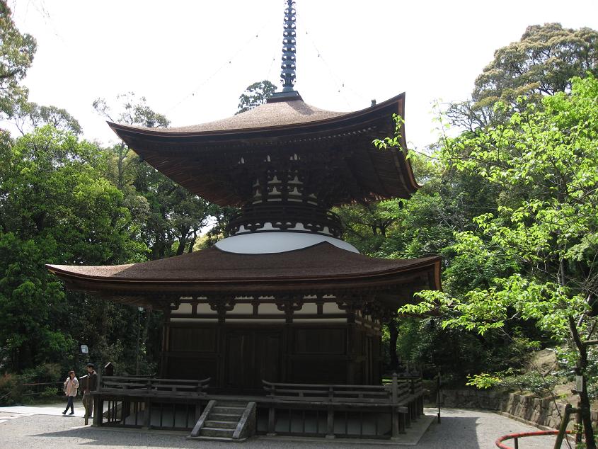 三井寺の入り口仁王門 金堂から山手へ一切経蔵(毛利輝元より山口県から移築寄進)高麗版一切経を納める回転式の八角輪蔵があります。マニ車風に見えました。
